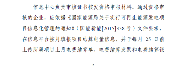風(fēng)電、光伏發(fā)電企業(yè)通過(guò)可再生能源發(fā)電項(xiàng)目信息管理系統(tǒng),依據(jù)項(xiàng)目核準(zhǔn)(備案)文件、電費(fèi)結(jié)算單、電費(fèi)結(jié)算發(fā)票和電費(fèi)結(jié)算銀行轉(zhuǎn)賬證明等證明材料申請(qǐng)綠色電力證書(shū),國(guó)家可再生能源信息管理中心按月核定和核發(fā)綠色電力證書(shū)。