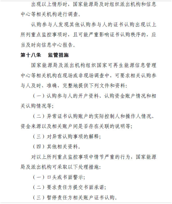 根據(jù)市場(chǎng)認(rèn)購(gòu)情況,自2018年起適時(shí)啟動(dòng)可再生能源電力配額考核和綠色電力證書(shū)強(qiáng)制約束交易。