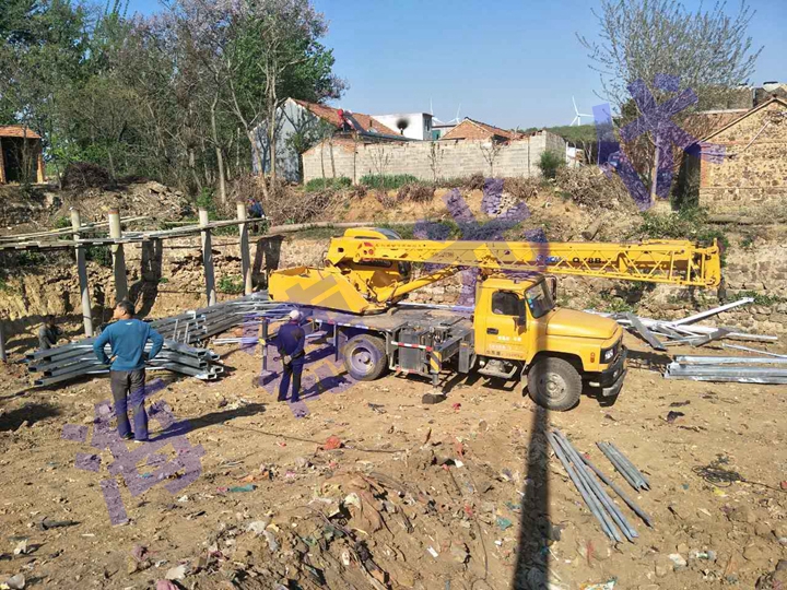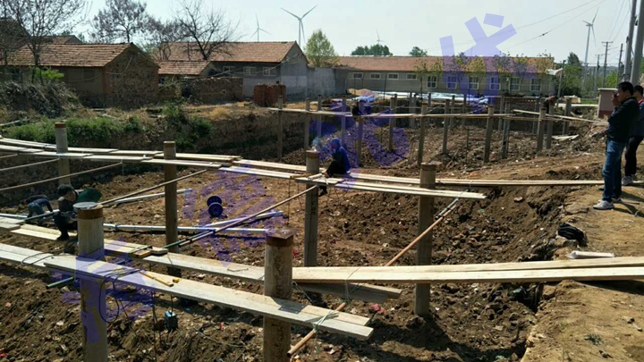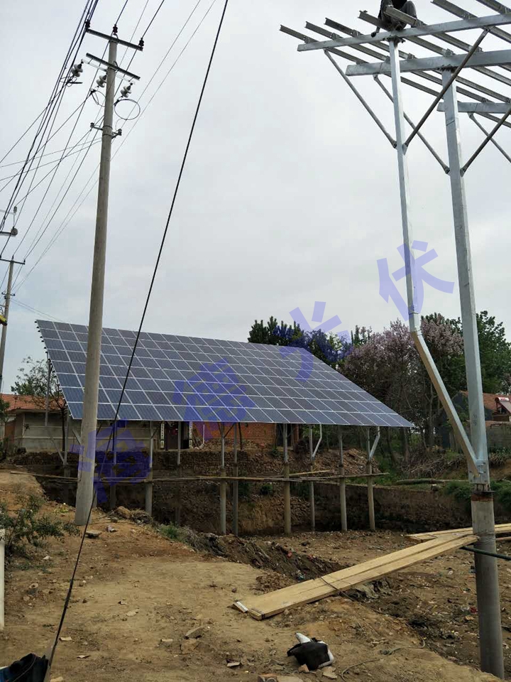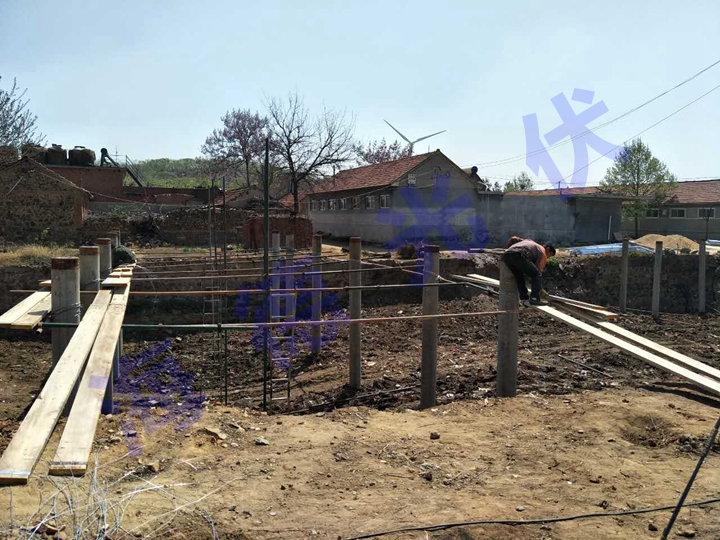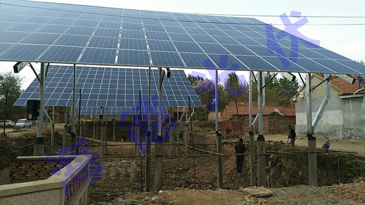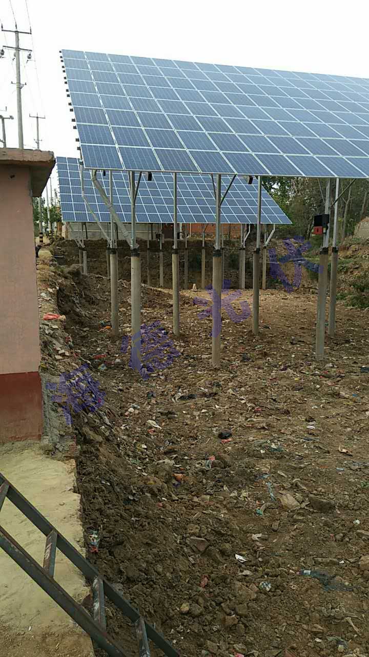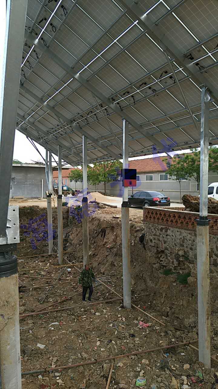 該光伏扶貧工程工地位于一個廢棄干涸的池塘內(nèi),整個池塘深度在3米左右。池塘兩側(cè)均為民房,為了防止光伏電站的采光受到兩側(cè)民房的阻擋而影響發(fā)電效果,在設(shè)計之初,就將整個光伏電站的高度整體拉高,池塘底部打樁,伸出地上的樁體高度達(dá)到4米,而深入地下的樁體長度同樣達(dá)到4米以上。