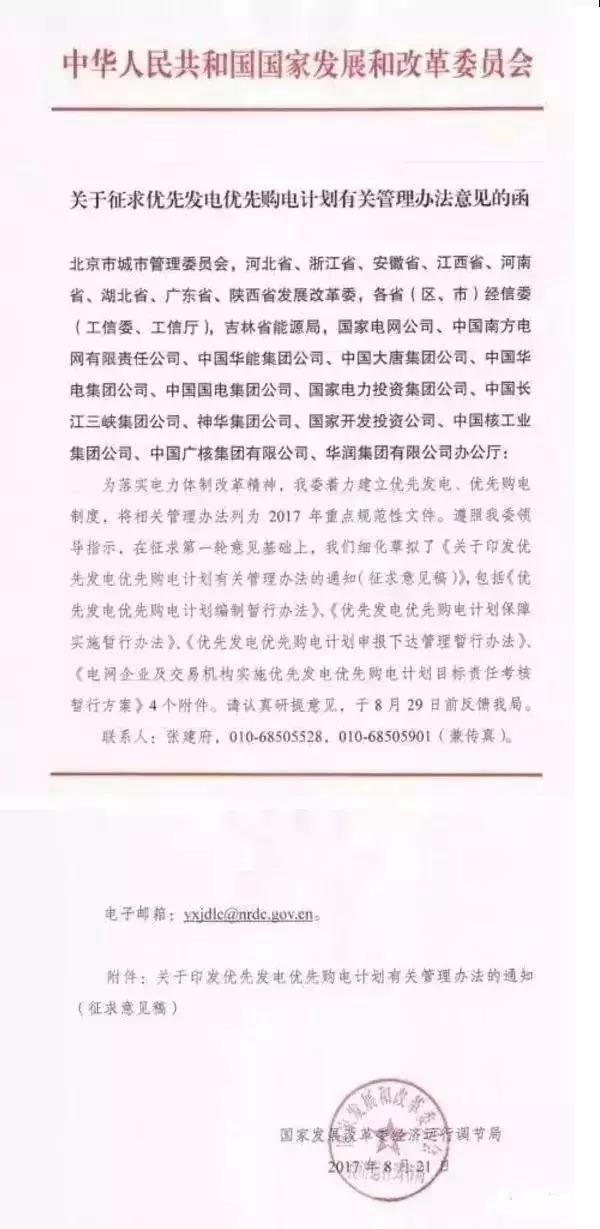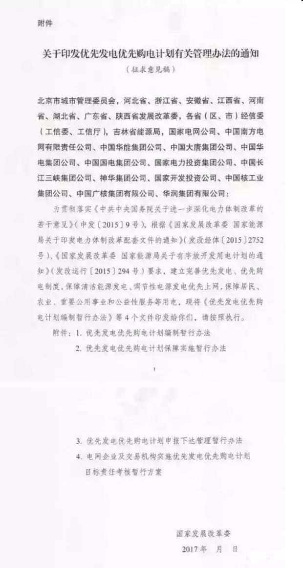 國家發(fā)改委近日發(fā)布《關(guān)于征求優(yōu)先發(fā)電優(yōu)先購電計劃有關(guān)管理辦法意見的函》。