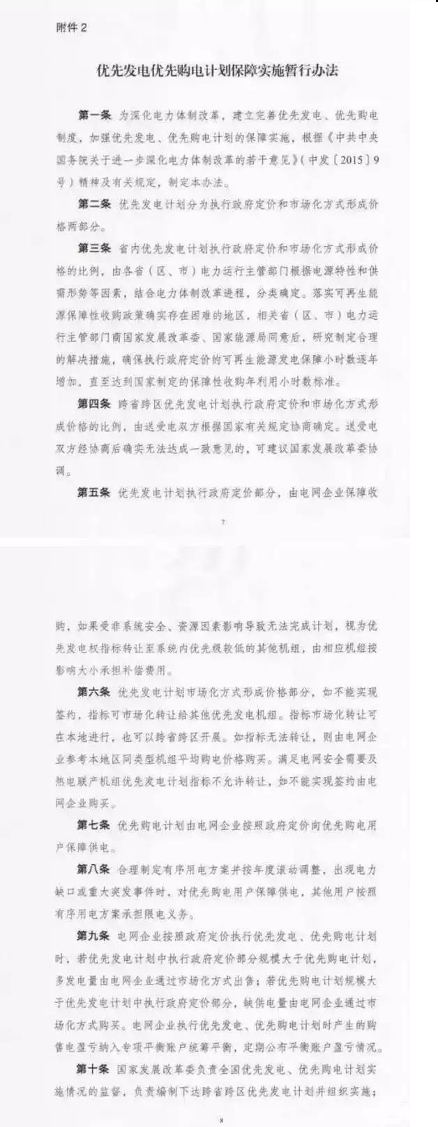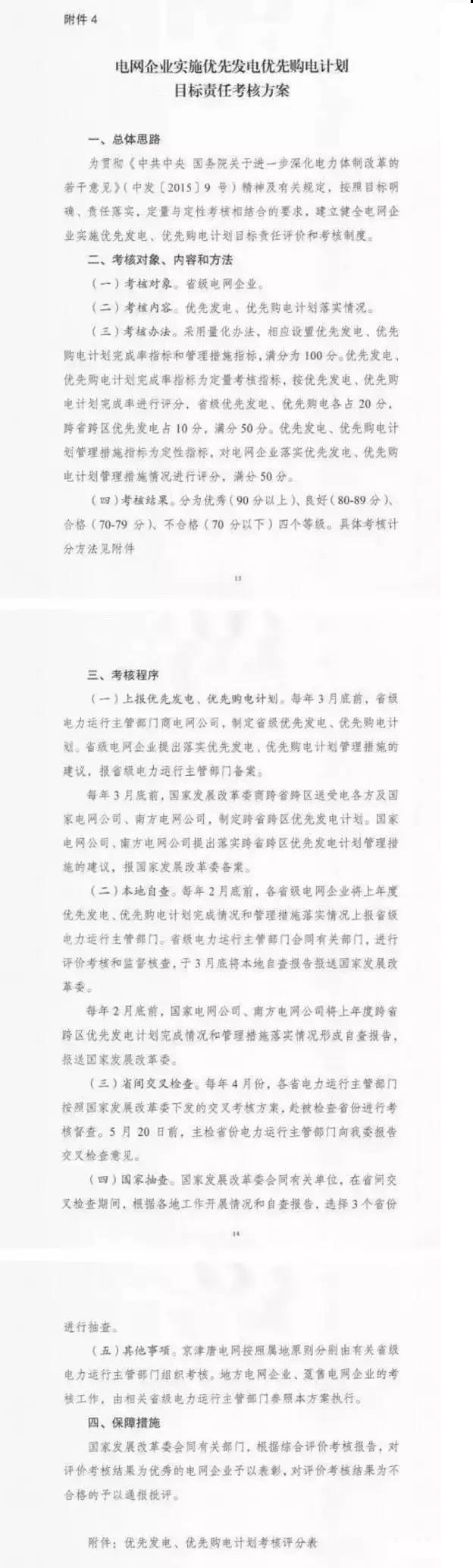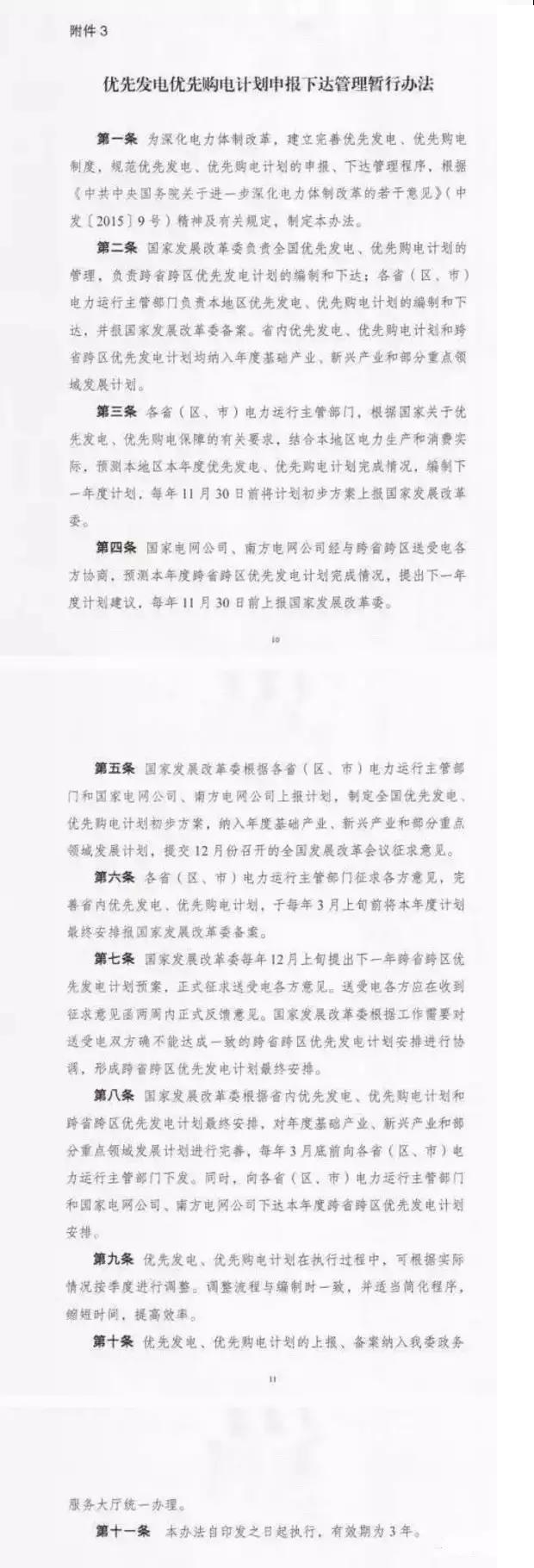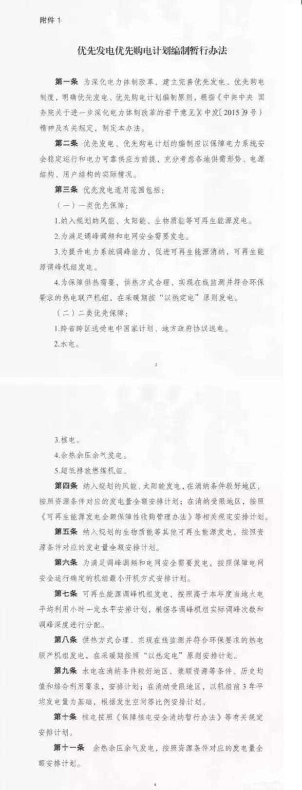 據(jù)悉,優(yōu)先發(fā)電優(yōu)先購電計劃有關(guān)管理辦法已被列為2017年重點規(guī)范性文件,在征求第一輪意見基礎(chǔ)上,目前已草擬了《關(guān)于印發(fā)優(yōu)先發(fā)電優(yōu)先購電計劃有關(guān)管理辦法的通知(征求意見稿)》,包括《優(yōu)先發(fā)電優(yōu)先購電計劃編制暫行辦法》、《優(yōu)先發(fā)電優(yōu)先購電計劃保障實施暫行辦法》、《優(yōu)先發(fā)電優(yōu)先購電計劃申報下達管理暫行辦法》、《電網(wǎng)企業(yè)及交易機構(gòu)實施優(yōu)先發(fā)電優(yōu)先購電計劃目標責任考核暫行方案》4個附件,相關(guān)征求意見應(yīng)于8月29日前反饋國家發(fā)改委經(jīng)濟運行調(diào)節(jié)局,其中《優(yōu)先發(fā)電優(yōu)先購電計劃編制暫行辦法》指出: