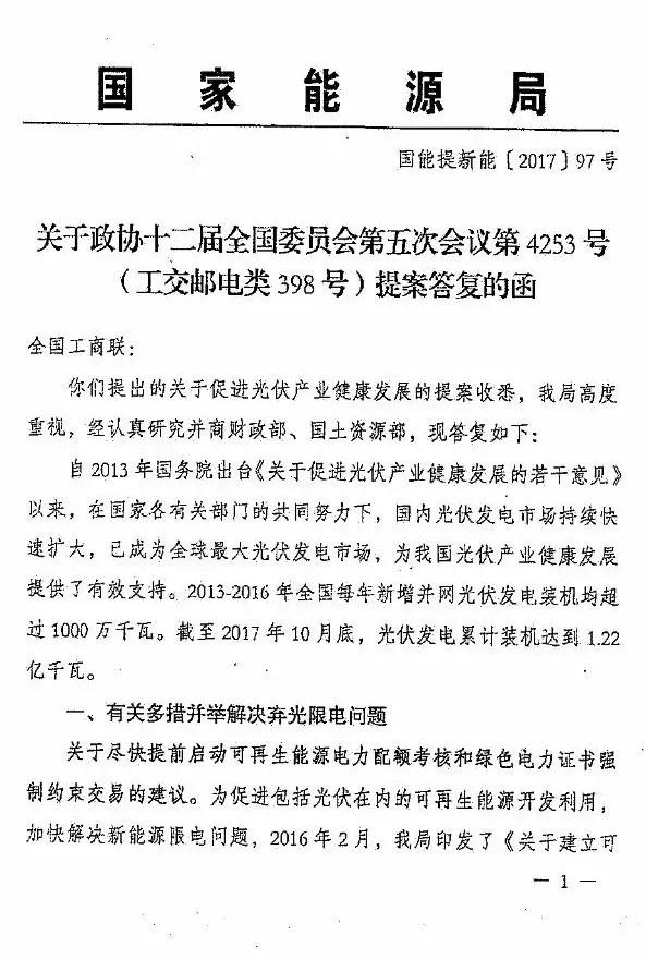 近日,國家能源局發(fā)布了《關(guān)于政協(xié)十二屆全國委員會第五次會議第4253號(工交郵電類398號)提案答復(fù)的函》,文件針對全國工商聯(lián)提出的“關(guān)于促進光伏產(chǎn)業(yè)健康發(fā)展的提案”做出答復(fù),并提出了一系列鼓勵光伏產(chǎn)業(yè)發(fā)展的措施。