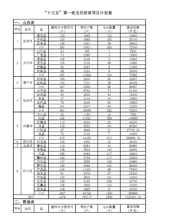 “十三五”第一批光伏扶貧項(xiàng)目計(jì)劃匯總表: