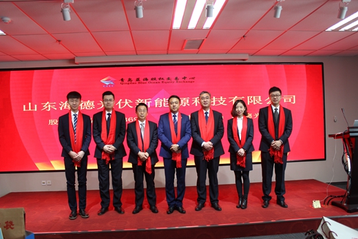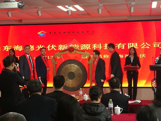 2018年3月28日上午,“2018年嶗山區(qū)企業(yè)區(qū)域性股權市場掛牌服務年暨藍海股權嶗山企業(yè)專場掛牌啟動儀式”在青島藍海股權交易中心隆重召開。伴隨著清脆的敲鑼聲,山東海德光伏新能源科技有限公司在青島藍海股權交易中心正式掛牌上市,股權代碼:801369,股權簡稱:海德光伏。