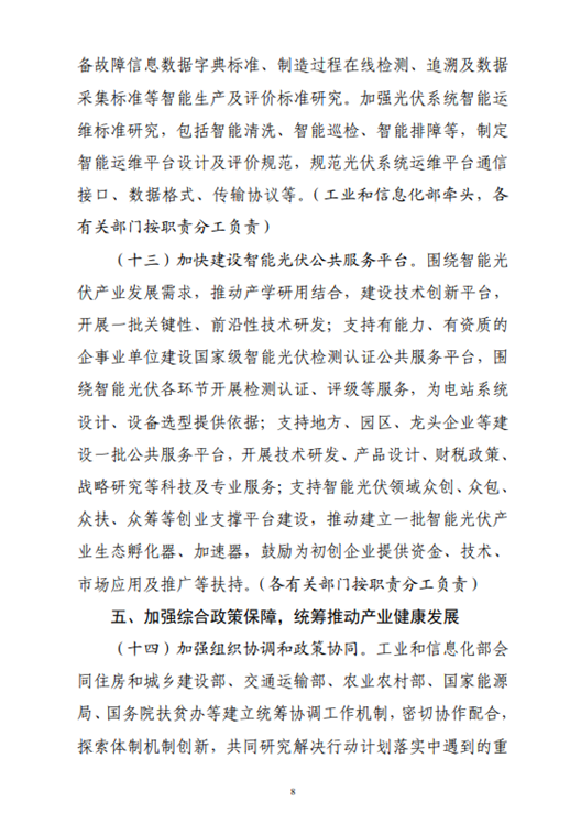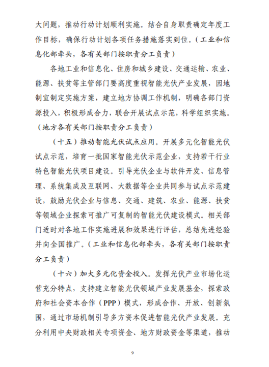 近日,國家六部委——工業(yè)和信息化部、住房和城鄉(xiāng)建設(shè)部、交通運輸部、農(nóng)業(yè)農(nóng)村部、國家能源局和國務(wù)院扶貧辦聯(lián)合下發(fā)文件《智能光伏產(chǎn)業(yè)發(fā)展行動計劃(2018-2020)》,明確提出了光伏產(chǎn)業(yè)智能化作為今后幾年行業(yè)發(fā)展的重要方向和目標(biāo)。