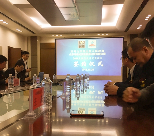 10月25日,山東海德光伏新能源科技有限公司與黑龍江省雙鴨山市寶山區(qū)人民政府在區(qū)政府會議廳,正式簽訂了《36MW生物質(zhì)能源發(fā)電項(xiàng)目投資協(xié)議》,代表著該項(xiàng)目開始進(jìn)入了正式實(shí)施階段。