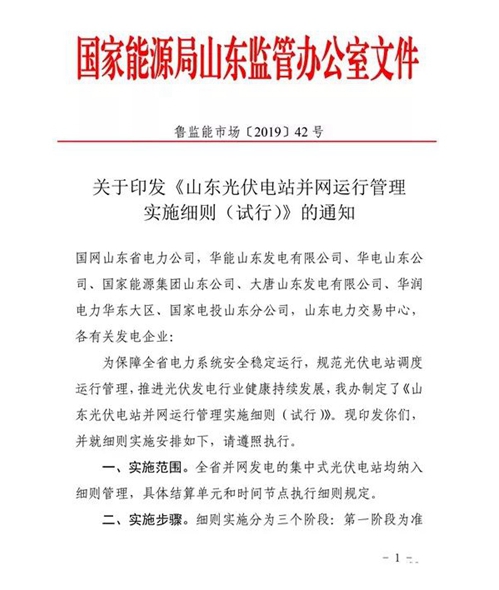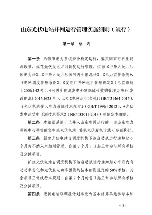 山東光伏電站并網(wǎng)運行管理實施細則(試行)