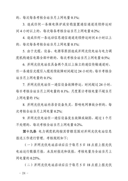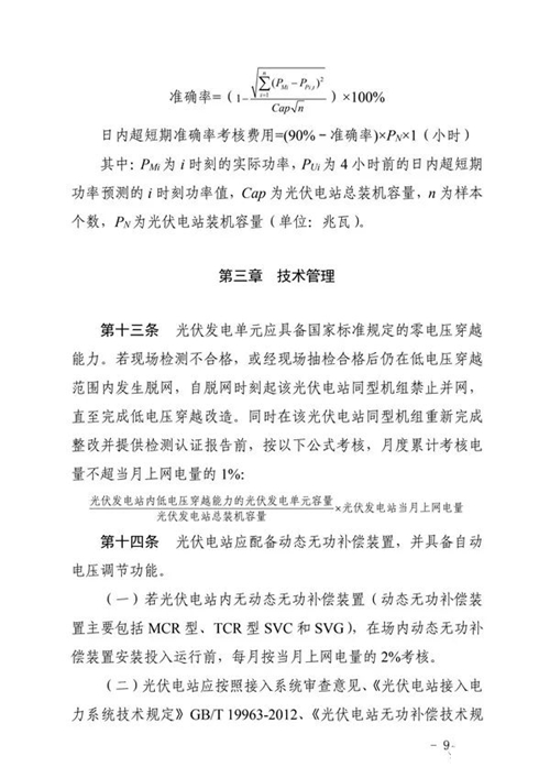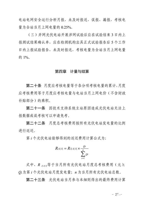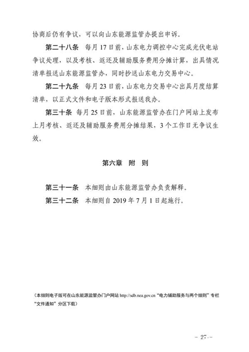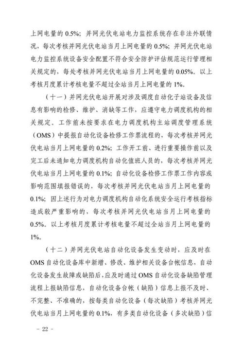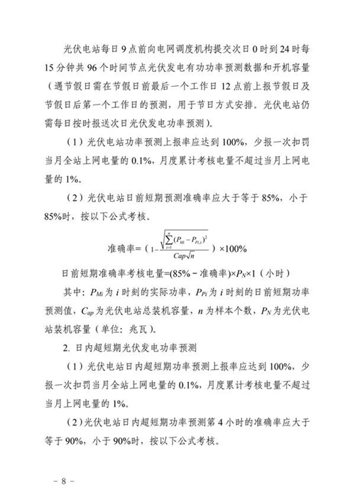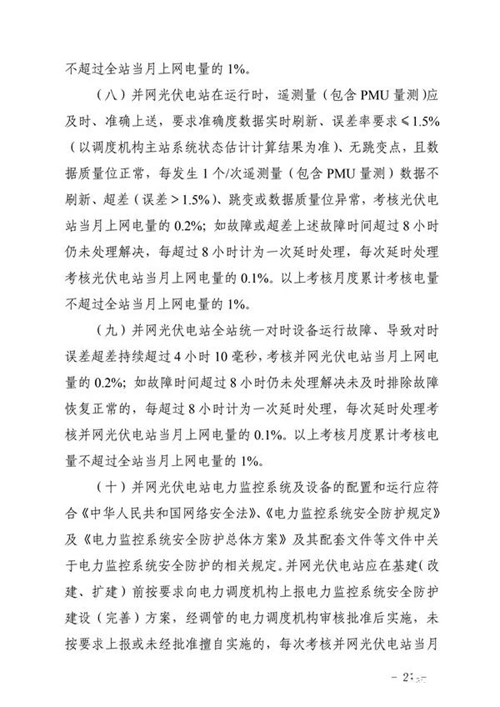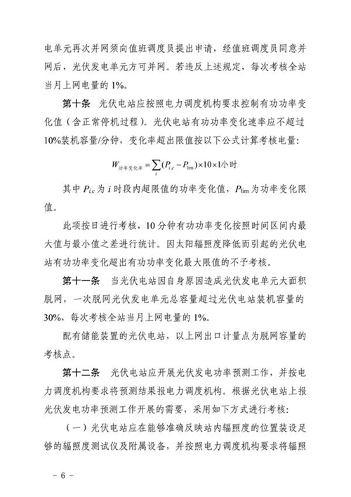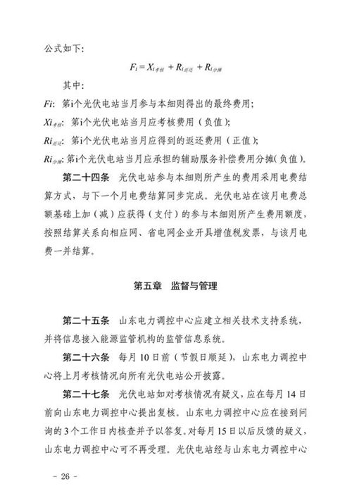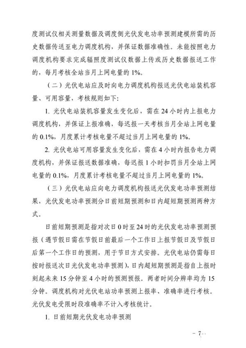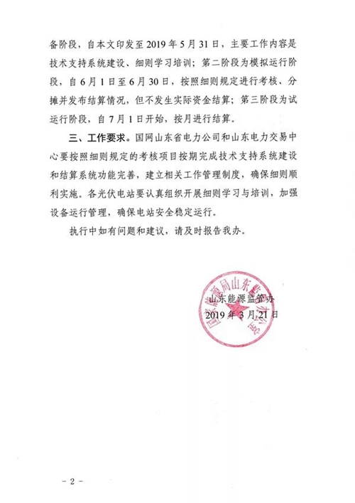 三、工作要求。國網(wǎng)山東省電力公司和山東電力交易中心要按照細則規(guī)定的考核項目按期完成技術(shù)支持系統(tǒng)建設(shè)和結(jié)算系統(tǒng)功能完善,建立相關(guān)工作管理制度,確保細則順利實施。各光伏電站要認真組織開展細則學習與培訓,加強設(shè)備運行管理,確保電站安全穩(wěn)定運行