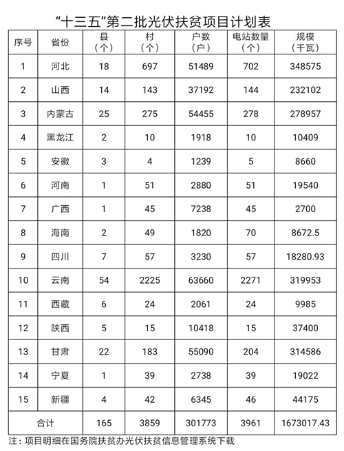 國(guó)家扶貧辦、能源局下發(fā)“十三五”第二批光伏扶貧項(xiàng)目計(jì)劃的通知