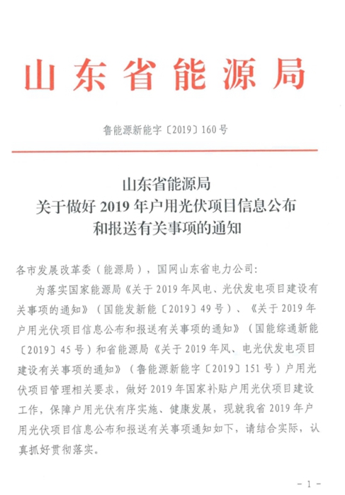 關(guān)于做好2019年戶用光伏項(xiàng)目信息公布和報(bào)送有關(guān)事項(xiàng)的通知