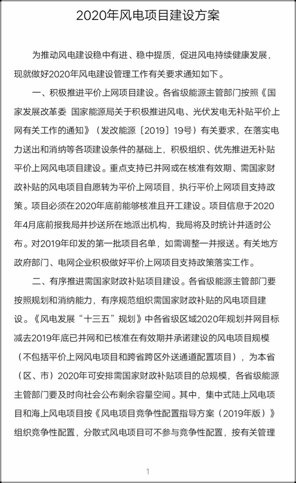 近日,國(guó)家能源局等相關(guān)部門發(fā)布通知,對(duì)2020年的風(fēng)電及光伏發(fā)電項(xiàng)目建設(shè)事宜作出說(shuō)明,主要內(nèi)容如下: