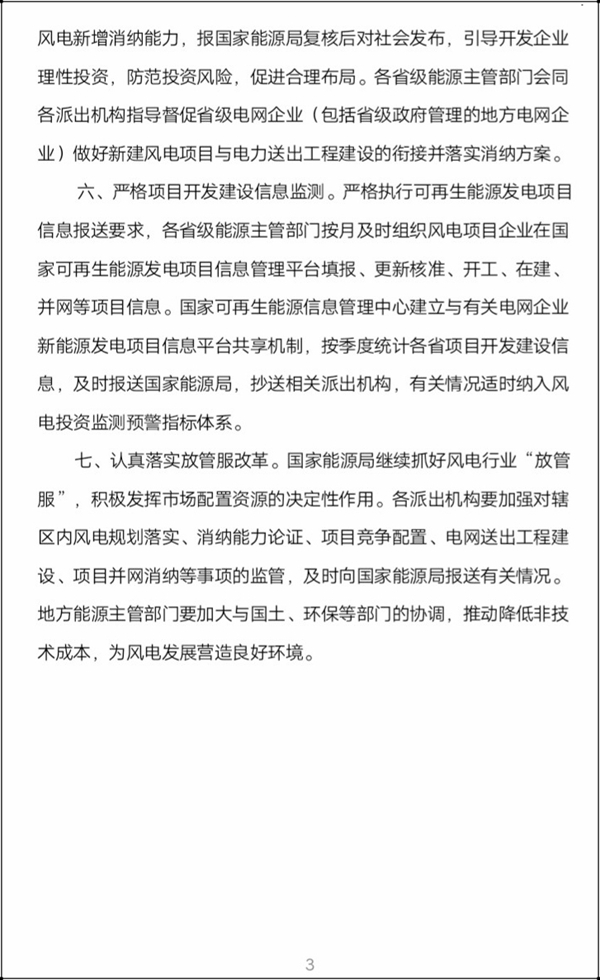 四、各派出機(jī)構(gòu)要加強(qiáng)對(duì)轄區(qū)內(nèi)風(fēng)電、光伏發(fā)電規(guī)劃落實(shí)、消納能力論證、項(xiàng)目競(jìng)爭(zhēng)配置、電網(wǎng)送出工程建設(shè)、項(xiàng)目并網(wǎng)消納等事項(xiàng)的監(jiān)管,及時(shí)向國(guó)家能源局報(bào)送有關(guān)情況。
