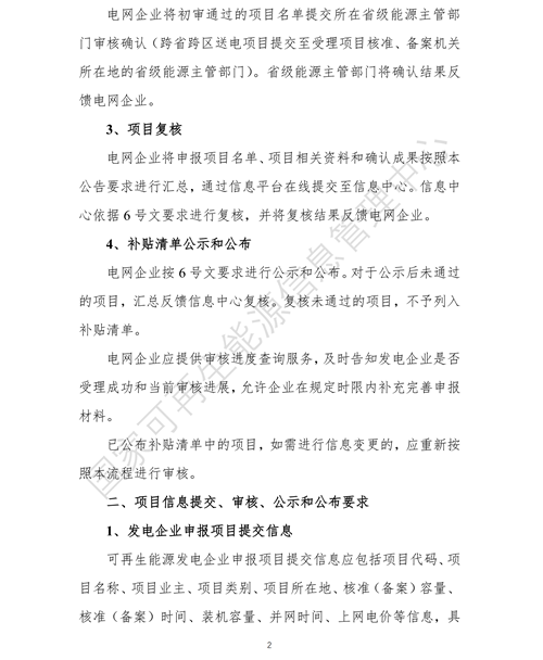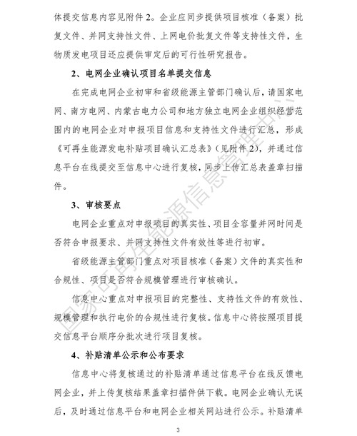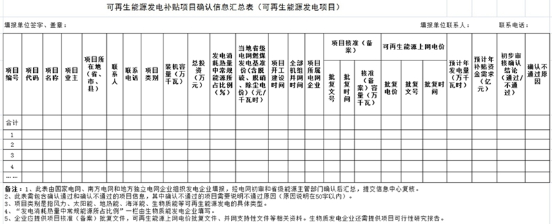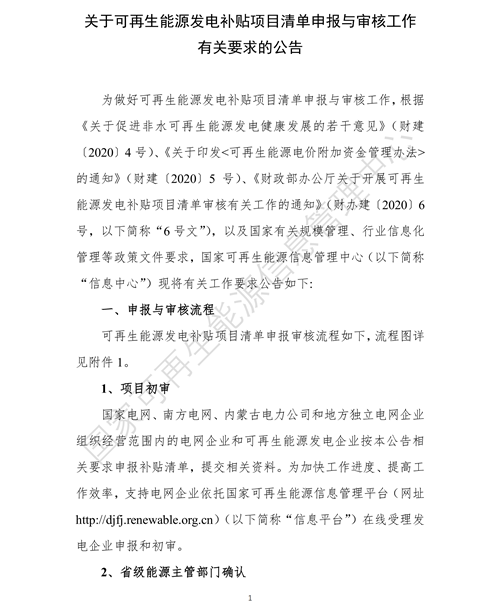 關(guān)于可再生能源發(fā)電補貼項目清單申報與審核工作有關(guān)要求的公告