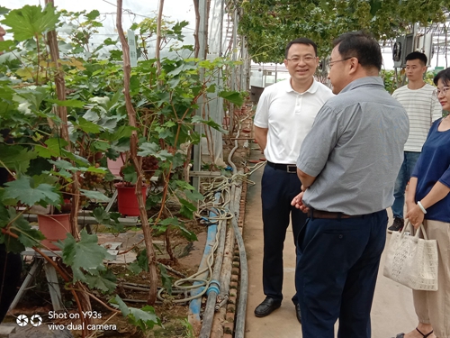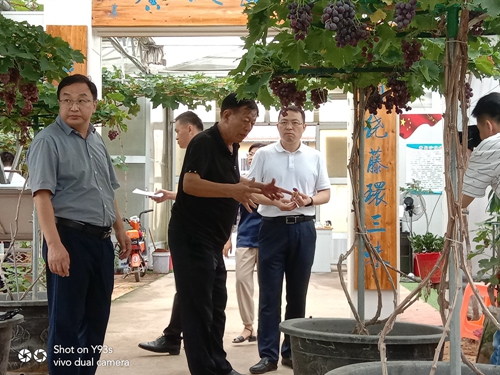 8.20日,平度市副市長羅毅一行前往公司沙北頭盆景葡萄創(chuàng)業(yè)產業(yè)園參觀調研,隨同前來的還包括平度市宣傳部、市委辦公室等部門領導及仁兆鎮(zhèn)黨委丁維冠書記等領導人員。