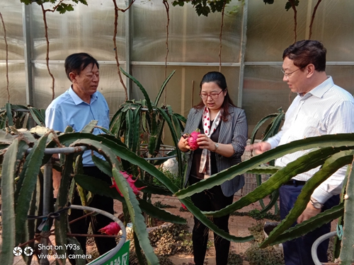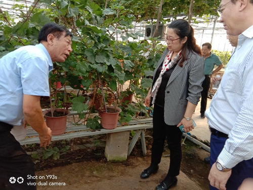 考察團(tuán)一行走進(jìn)沙北頭莊戶(hù)學(xué)院、農(nóng)民創(chuàng)業(yè)園、特色種植作物培育基地,實(shí)地查看了盆景葡萄、火龍果、荔枝的種植生長(zhǎng)情況。公司理事長(zhǎng)、園區(qū)負(fù)責(zé)人王桂欣向來(lái)訪(fǎng)的各位領(lǐng)導(dǎo)細(xì)致講解了園區(qū)的創(chuàng)設(shè)、發(fā)展及規(guī)劃等情況,并就盆景葡萄等特色經(jīng)濟(jì)作物的培育、養(yǎng)護(hù)、套盆、掛果、銷(xiāo)售等一系列環(huán)節(jié)做了說(shuō)明。