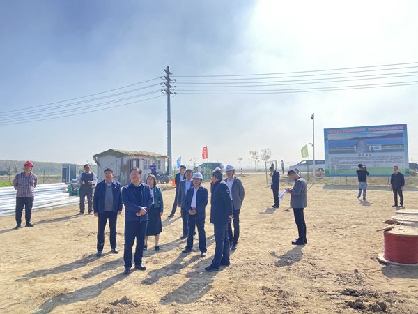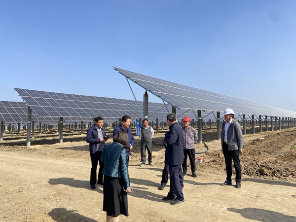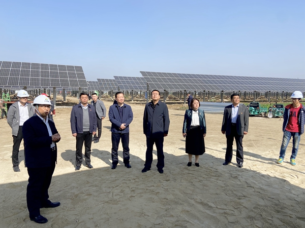 施工現(xiàn)場(chǎng),項(xiàng)目負(fù)責(zé)人鄧振文向來訪的各位領(lǐng)導(dǎo)詳細(xì)介紹了崔家集項(xiàng)目的基本概況,包括安裝容量、占地面積、項(xiàng)目規(guī)模、工程進(jìn)度、施工管理、發(fā)展前景等一系列情況,讓各位來訪領(lǐng)導(dǎo)對(duì)于崔家集光伏發(fā)電項(xiàng)目的現(xiàn)狀及前景都有了基本的了解和認(rèn)識(shí)。崔家集現(xiàn)代光伏農(nóng)業(yè)項(xiàng)目,地上光伏發(fā)電屬于國(guó)家大力扶持的新能源行業(yè),地面開展農(nóng)業(yè)種植,鄧振文又從“農(nóng)業(yè)+光伏”的雙重角度向各位領(lǐng)導(dǎo)介紹了項(xiàng)目未來的方向及發(fā)展意義,對(duì)于改善優(yōu)化地區(qū)能源結(jié)構(gòu)、推動(dòng)特色農(nóng)業(yè)發(fā)展都具有重要的推動(dòng)作用。