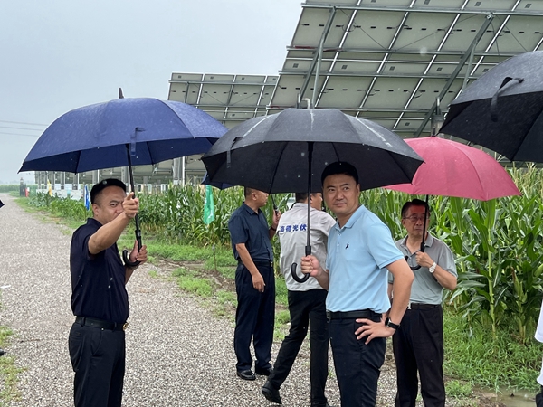 8月9日上午,青島城陽城市發(fā)展集團(tuán)有限公司總經(jīng)理、青島陽光農(nóng)投集團(tuán)董事長兼總經(jīng)理劉宏、總經(jīng)理助理劉新國等領(lǐng)導(dǎo)一行人員來到公司崔家集項(xiàng)目現(xiàn)場,視察項(xiàng)目發(fā)電運(yùn)營情況。山東海德光伏新能源科技有限公司董事長王桂民、總經(jīng)理王東、副總經(jīng)理鄧振文等人全程陪同。