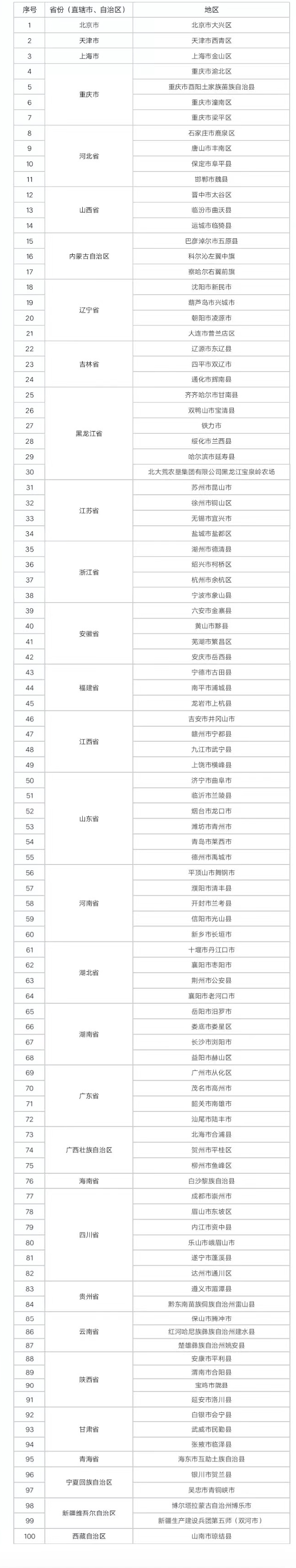 2022年國家鄉(xiāng)村振興100個(gè)示范縣創(chuàng)建名單如下:
