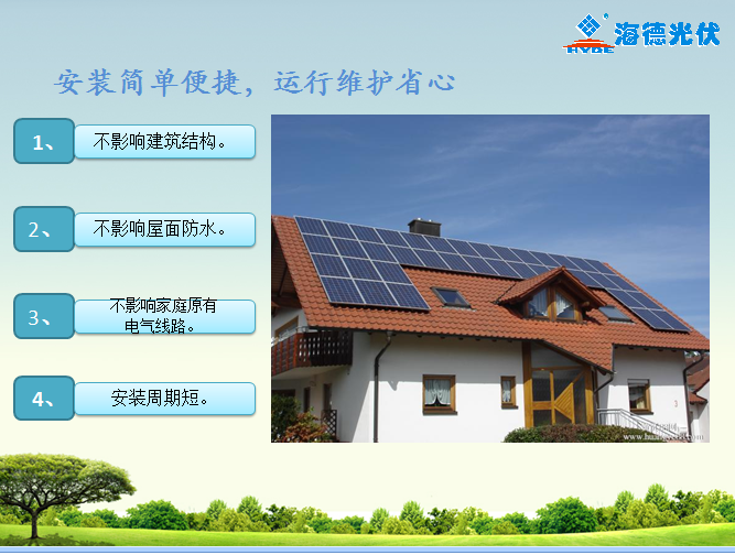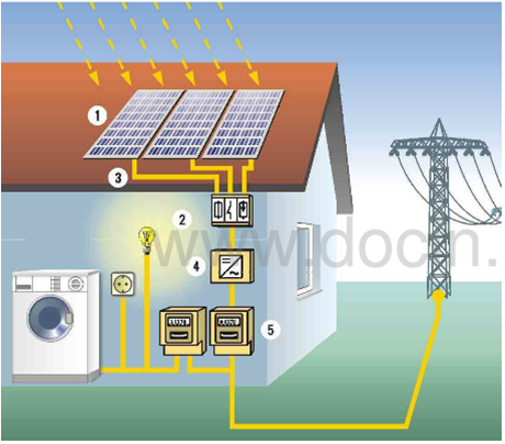 1、太陽能電池組件;2、鏈接箱;3、組件支架;4、并網(wǎng)逆變器;5、線纜配件;